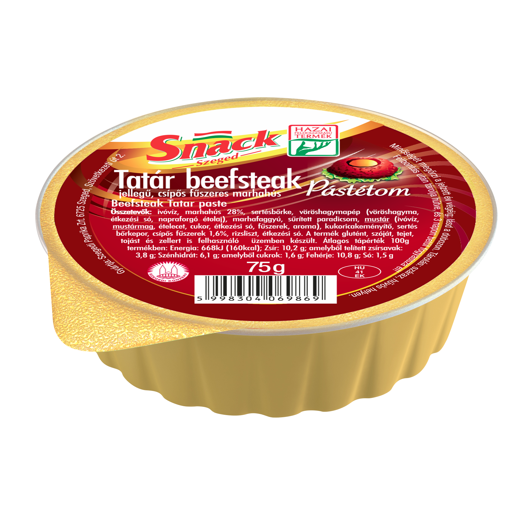 Tatár beefsteak jellegű, csípős fűszeres marhahús pástétom 75g